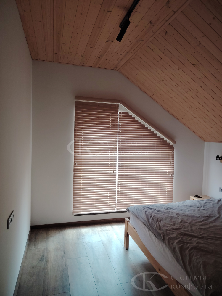 - высокая прочность при небольшом весе, что позволяет изготовить деревянные жалюзи любого размера, даже для высоких и широких окон;