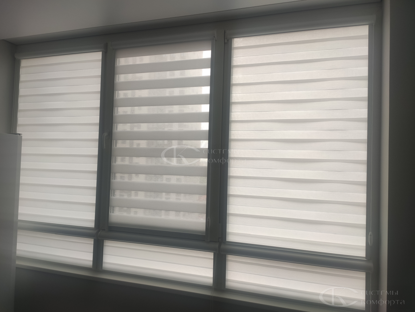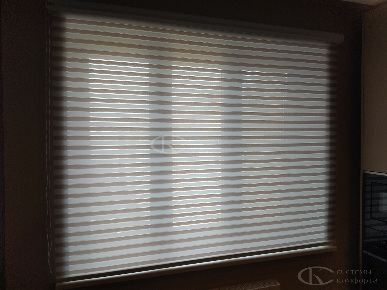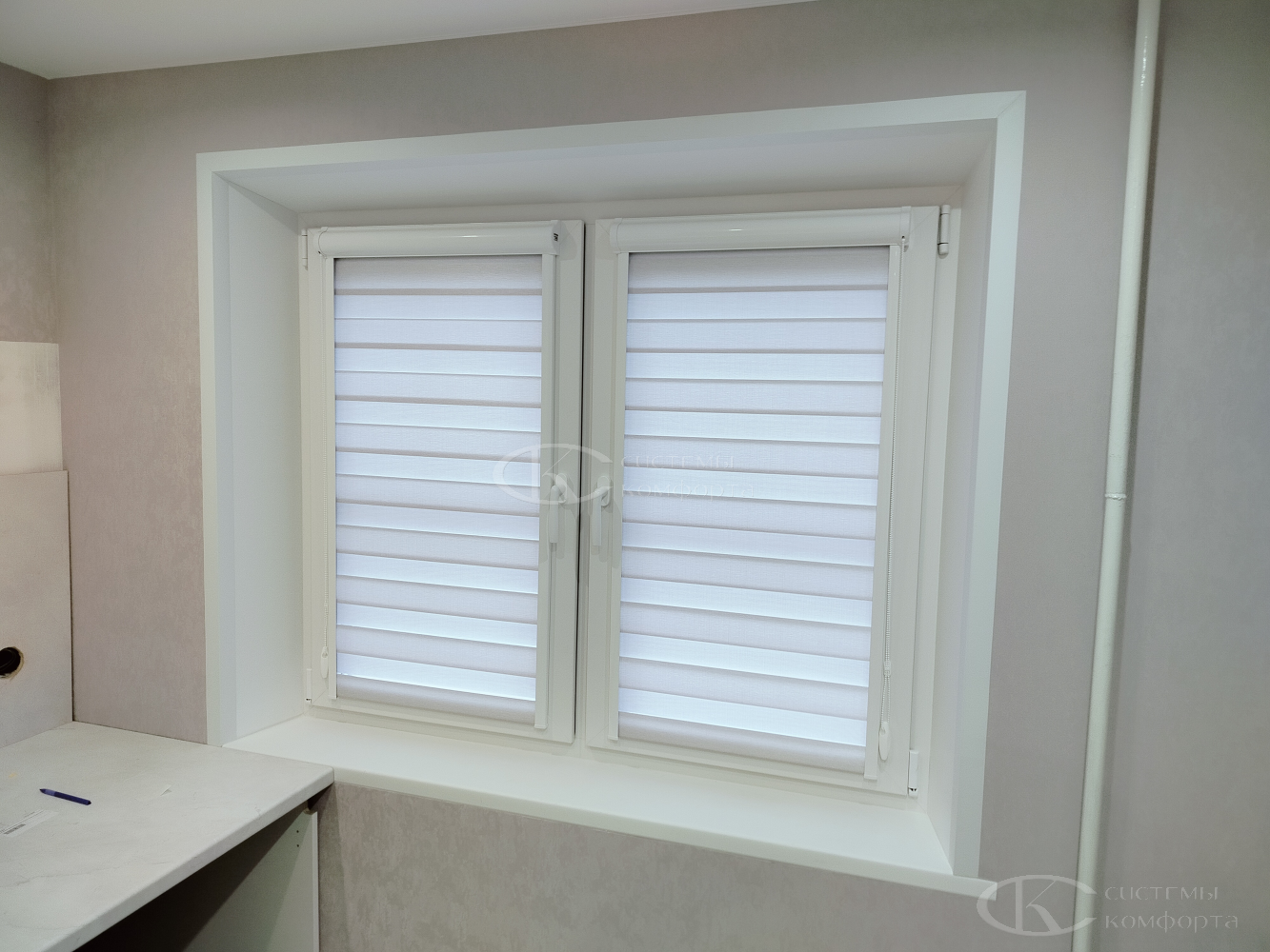 Классические рулонные шторы изготавливаются из огромного разнообразия тканей – от воздушных и полупрозрачных до абсолютно плотных, не пропускающих свет («блэкаут»), что позволяет подобрать решение для любой задачи и комнаты. Для тех, кто ценит гибкий сценарий освещения, идеальным выбором станут шторы «День-ночь», также известные как «Зебра». Их уникальная конструкция состоит из чередующихся прозрачных и плотных полос; регулируя их положение относительно друг друга, вы плавно управляете потоком света, создавая любой уровень затемнения между «светло» и «темно». Это оптимальный вариант для спальни и детской, где важно и мягкое утреннее пробуждение, и полная темнота для глубокого сна.